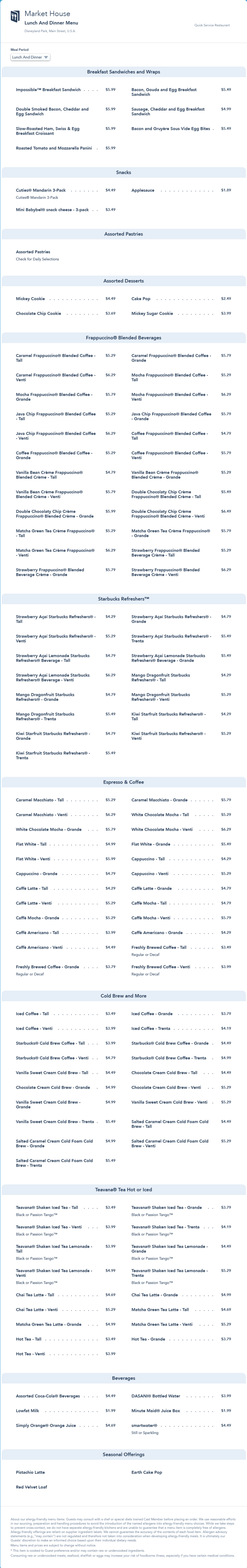 This menu was replaced by an updated lunch/dinner menu in July 2022 that replaced the Bacon, Gouda and Egg Breakfast Sandwich with the Chicken, Maple Butter and Egg Sandwich.