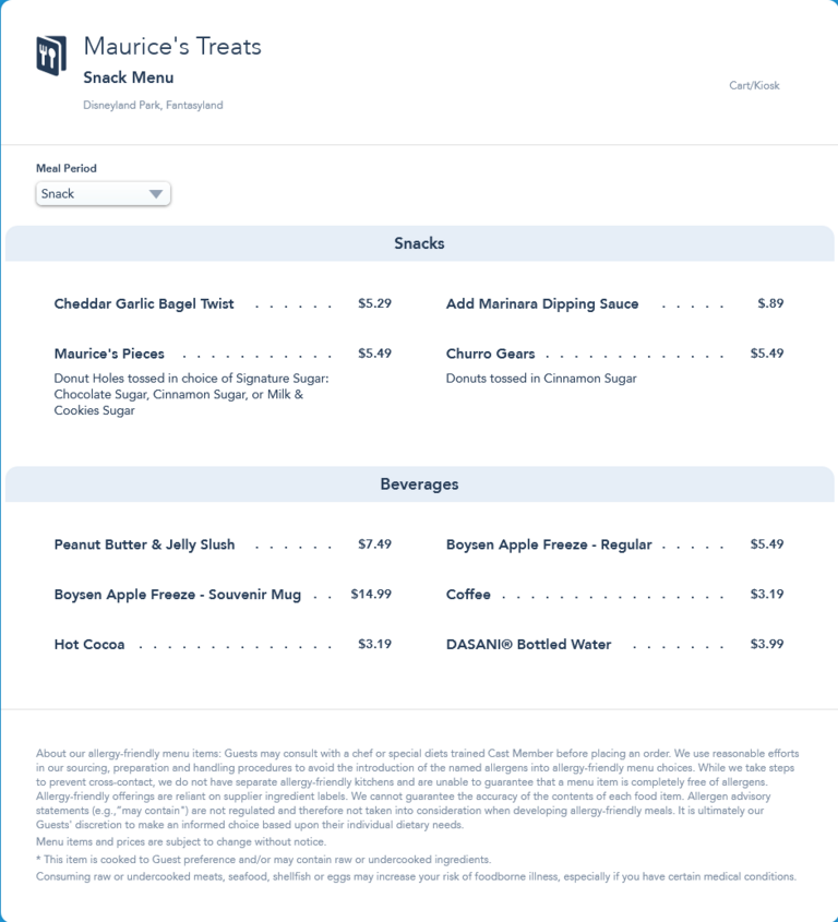 Maurice's Treats Snack Menu - June 2021