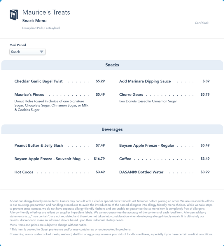 Maurice's Treats Snack Menu - November 2021