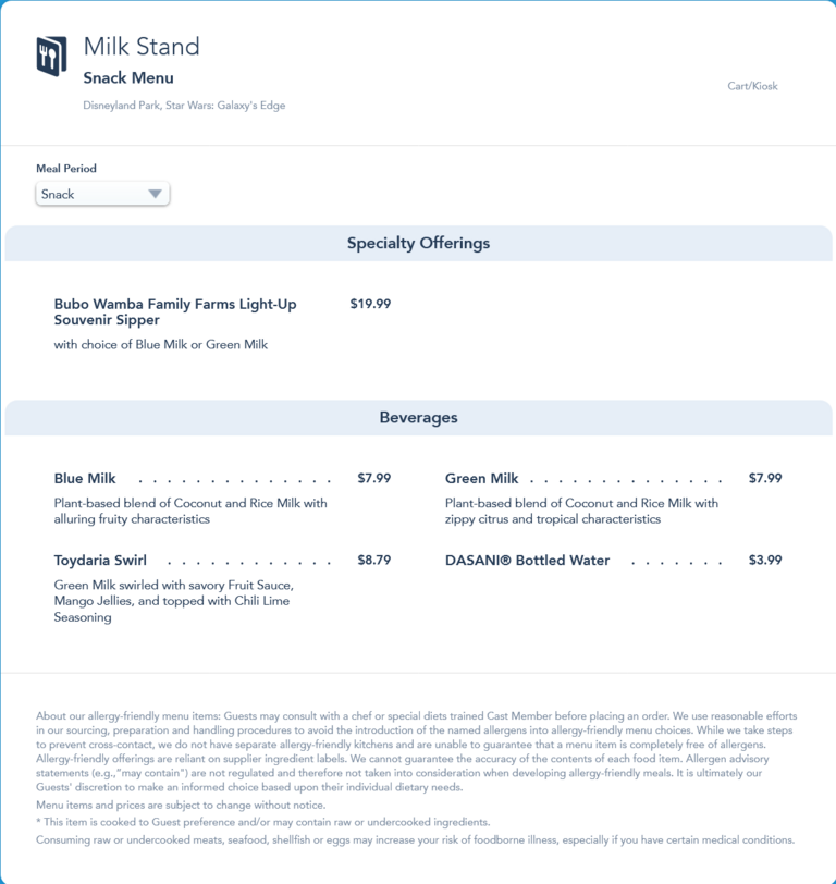 in May 2022 that removed the winter seasonal Bubo Wamba Family Farms Light-Up Souvenir Sipper and added the spring seasonal Blue Milk: Mon Cala Swirl and Chocolate Chip Sweet-Sand Cookie offerings.
