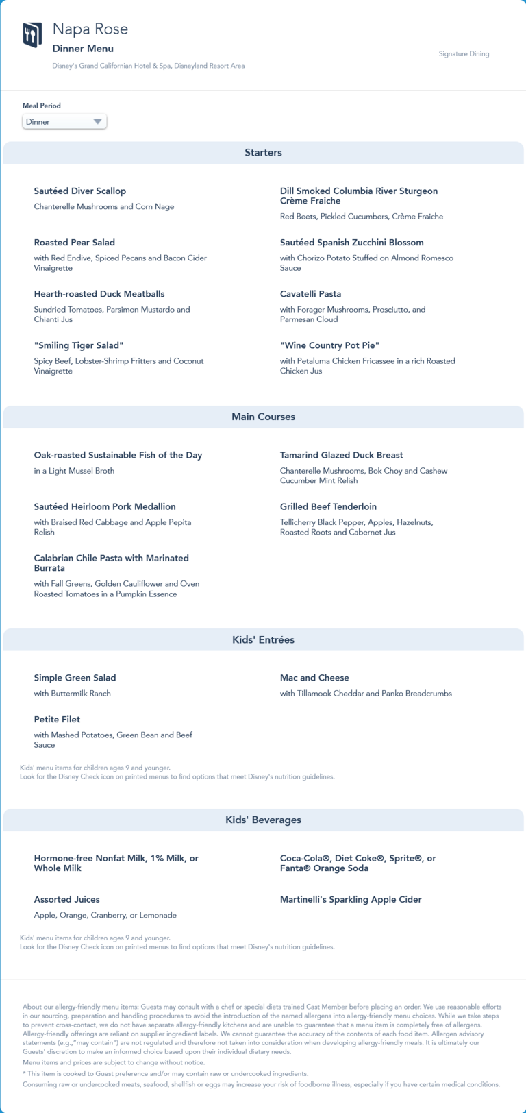 Napa Rose Dinner Menu - November 2021 (archived)