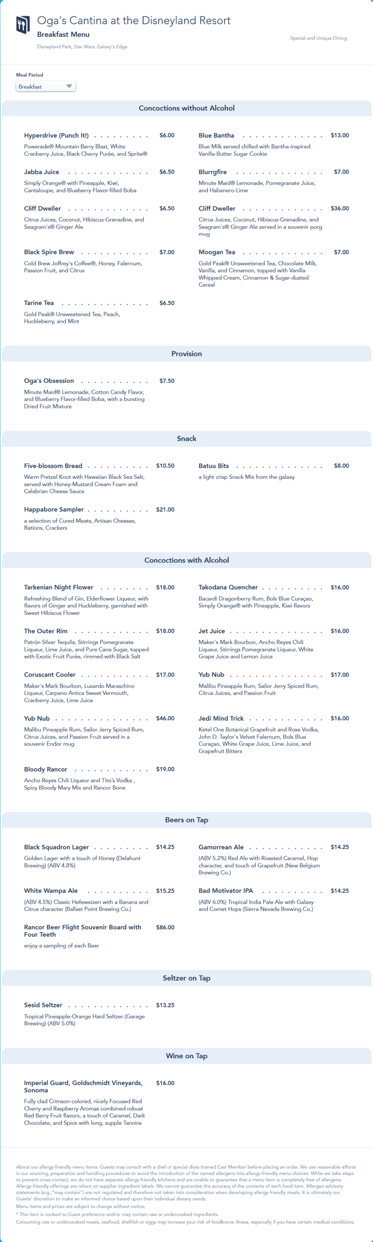 Oga's Cantina Breakfast Menu - May 2022