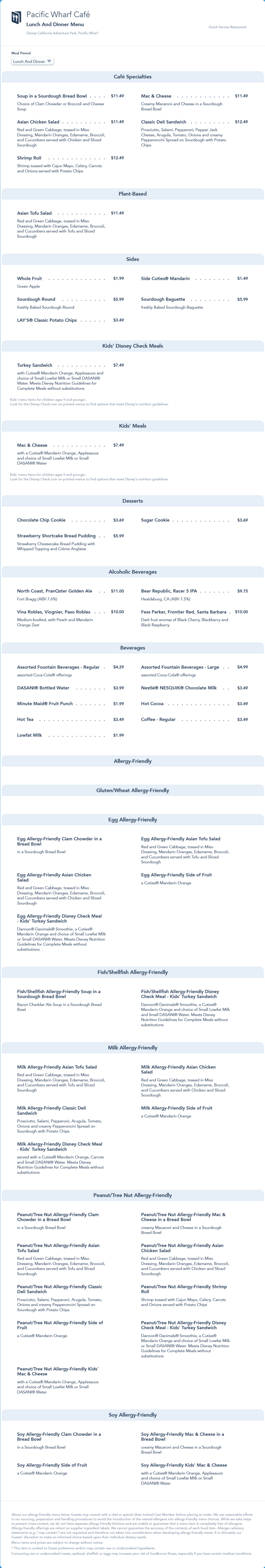 Pacific Wharf Café Lunch/Dinner Menu - May 2022