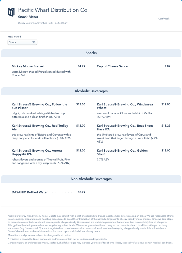 Winter menu that removed the Jalapeno and Cream Cheese Pretzel and replaced the fall soasonal Oktoberfest with the winter seasonal Golden Stout.
