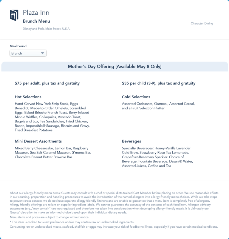 Plaza Inn Brunch Menu - Mother's Day 2022