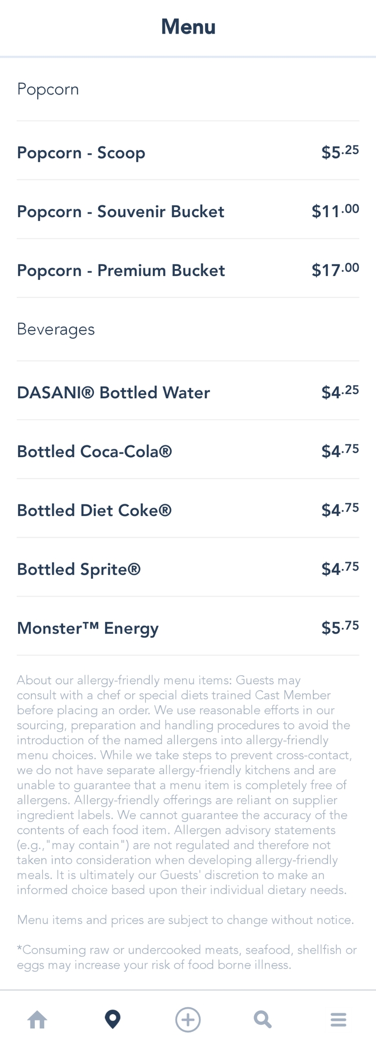 Popcorn at Grizzly Peak Airfield Snack Menu - September 2021