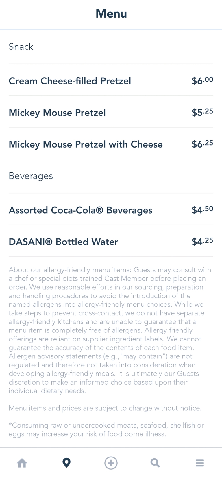 Pretzels at small world Promenade Snack Menu - July 2021 (archived)