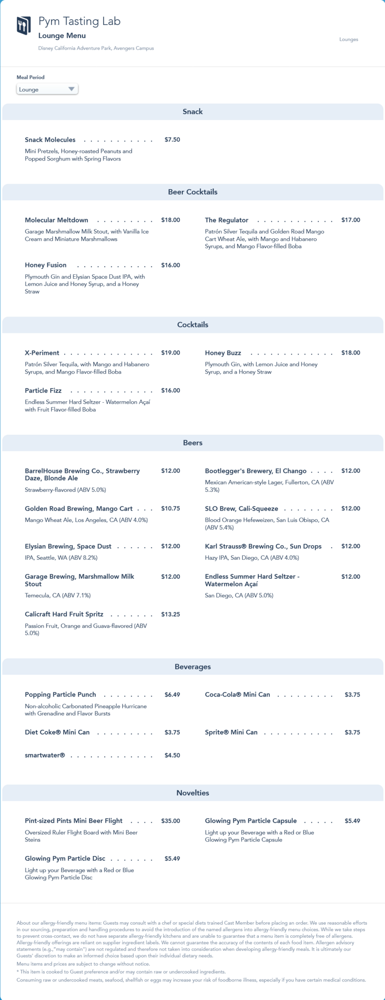 Pym Tasting Lab Lounge Menu - May 2022