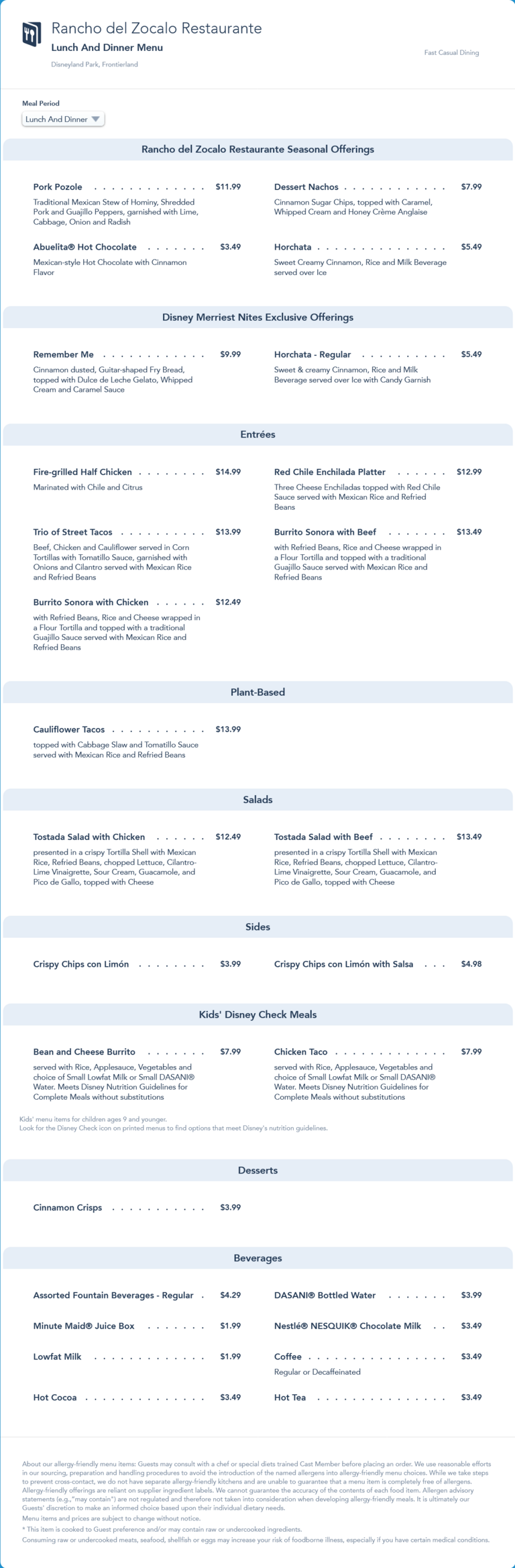 Rancho del Zocalo Restaurante Lunch/Dinner Menu - November 2021 (archived)