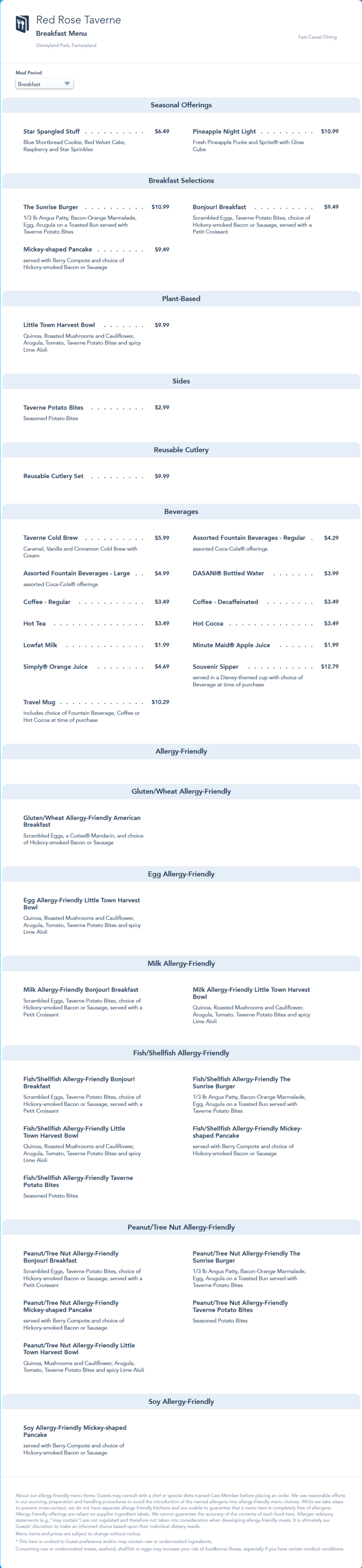 Red Rose Taverne Breakfast Menu - July 2022