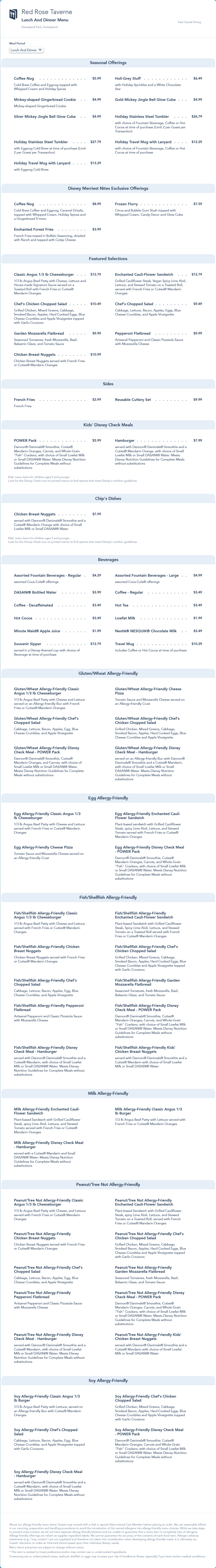 Red Rose Taverne Lunch/Dinner Menu - November 2021