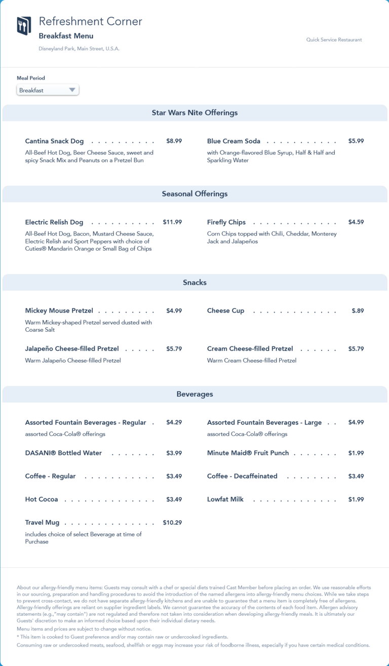 Refreshment Corner Breakfast Menu - Star Wars Nites 2022 (archived)