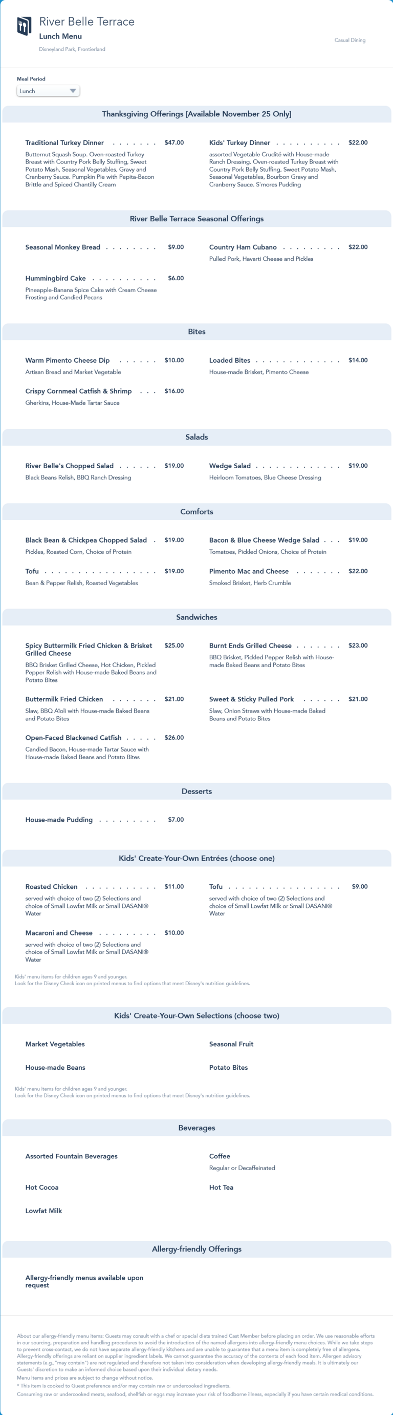 River Belle Terrace Lunch Menu - November 2021 (archived)
