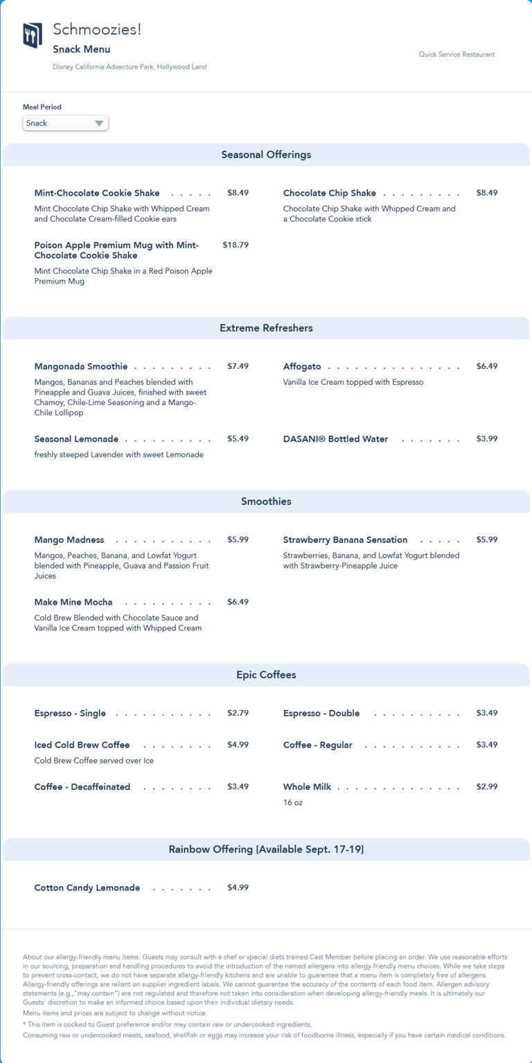 Schmoozies! Snack Menu - Gay Days 2021 (archived)