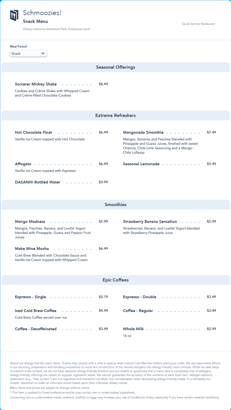 updated snack menu