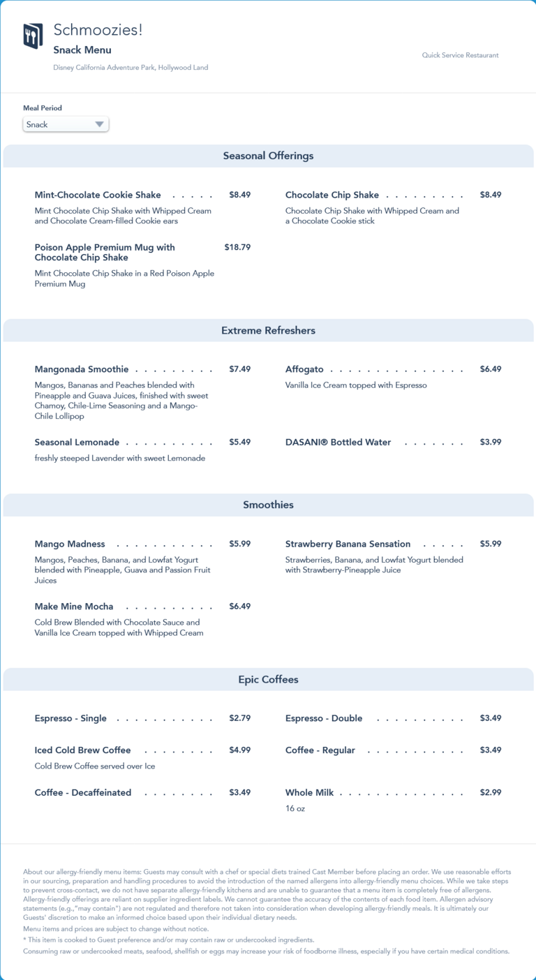 This menu was replaced by an updated menu in November 2021 that replaced the Halloween seasonal items with the Christmas seasonal offerings.