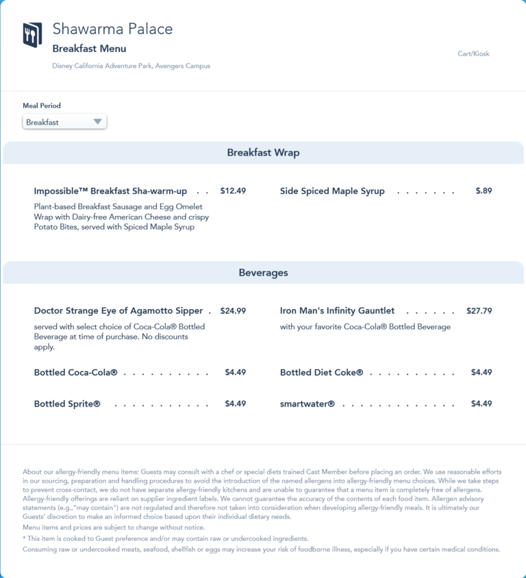Shawarma Palace Breakfast Menu - July 2022