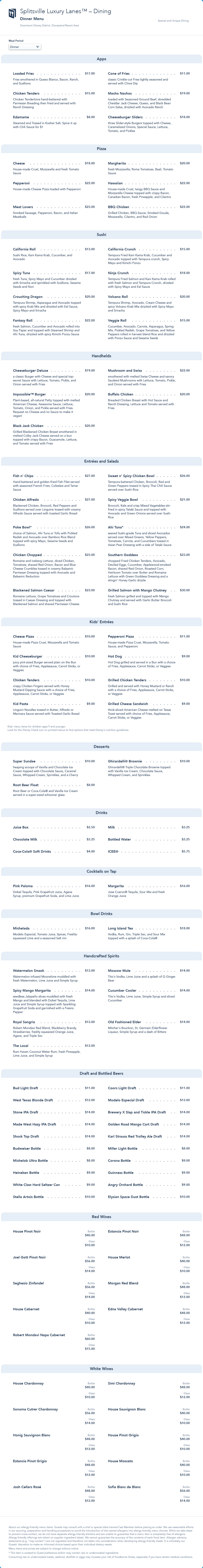 Splitsville Luxury Lanes Dinner Menu - May 2021 (archived)