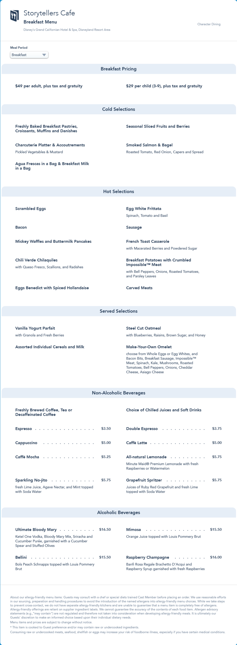 This menu was replaced by an updated breakfast menu in November 2021 that increased the price of Cocktails ($1) and Coffee beverages ($.50-$.75).