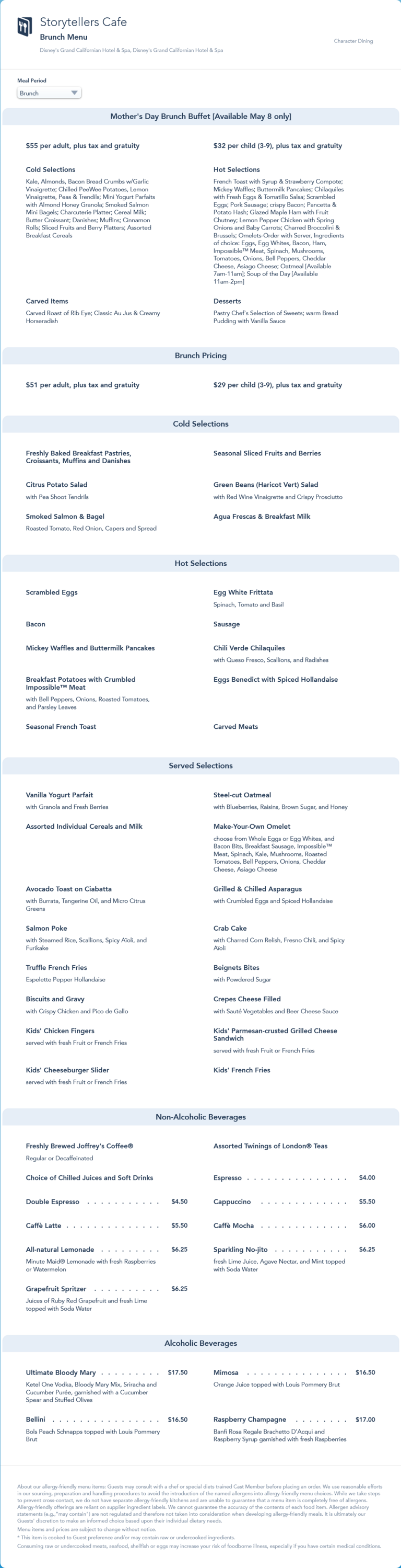 Storytellers Cafe Brunch Menu - Mother's Day 2022