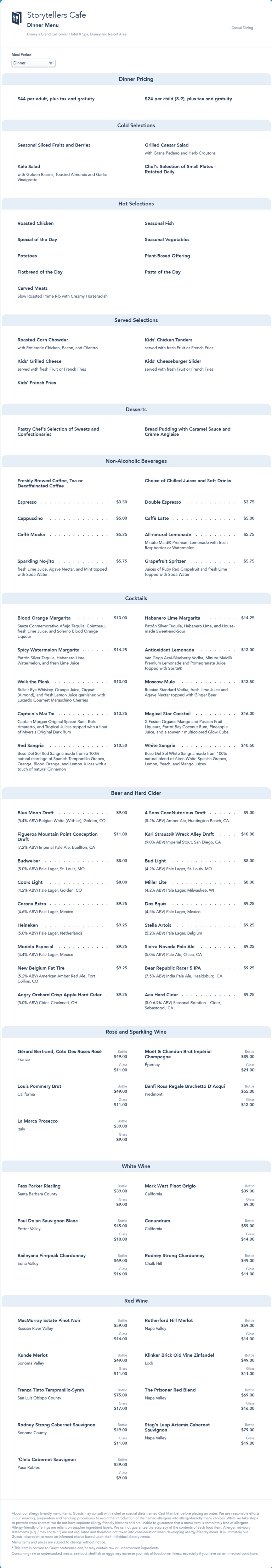 Storytellers Cafe Dinner Menu - August 2021 (archived)