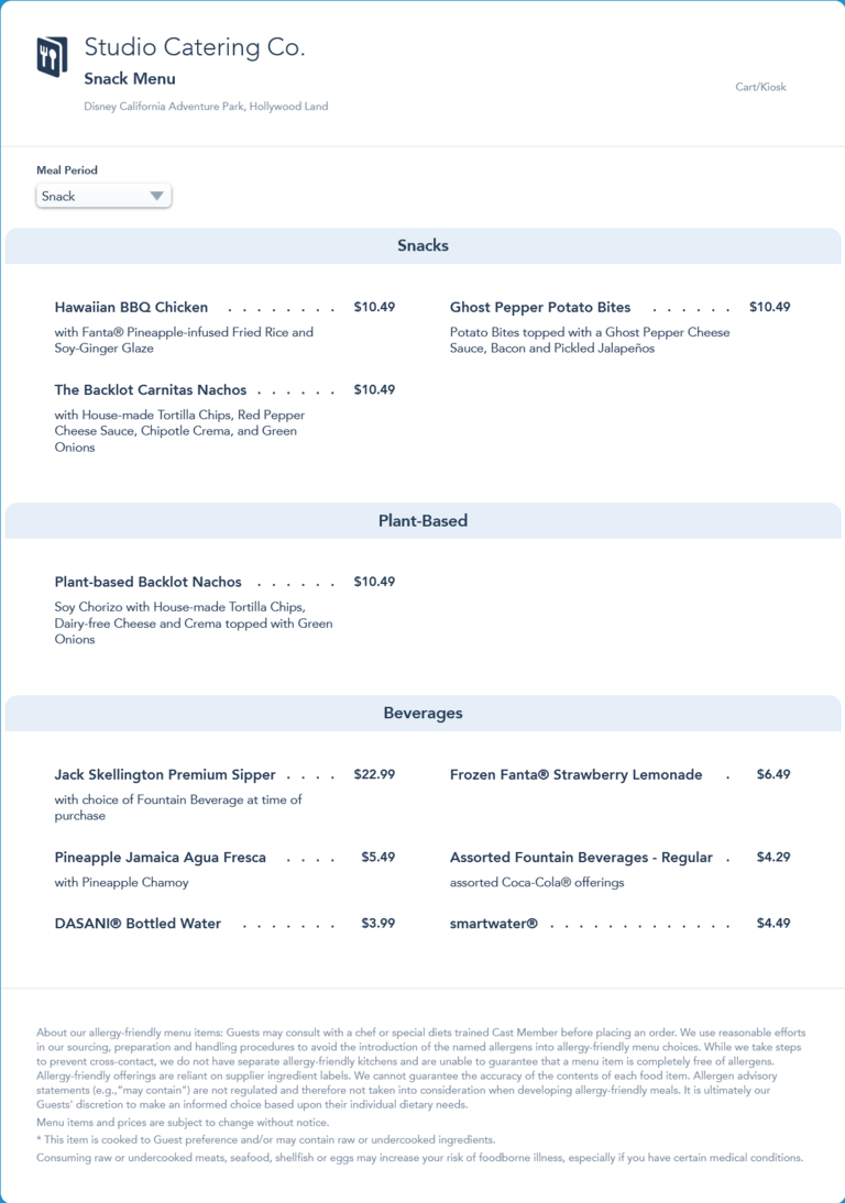 Studio Catering Co. Snack Menu - September 2021 (archived)