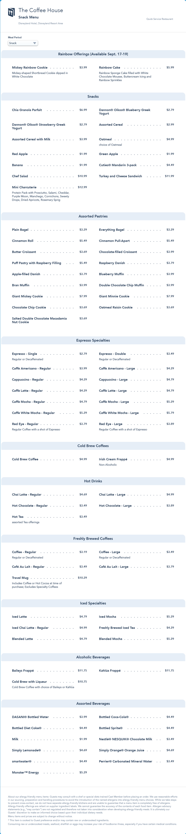 The Coffee House Snack Menu - Gay Days 2021 (archived)