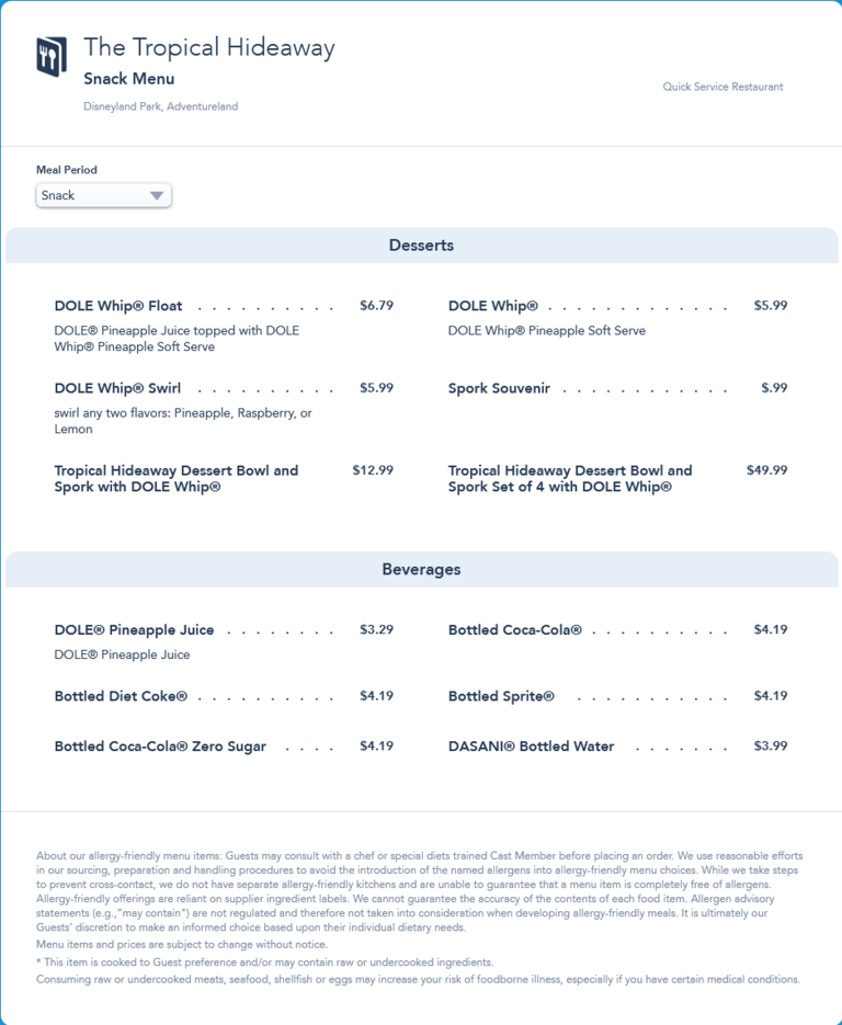 The Tropical Hideaway Snack Menu - April 2021 (archived)