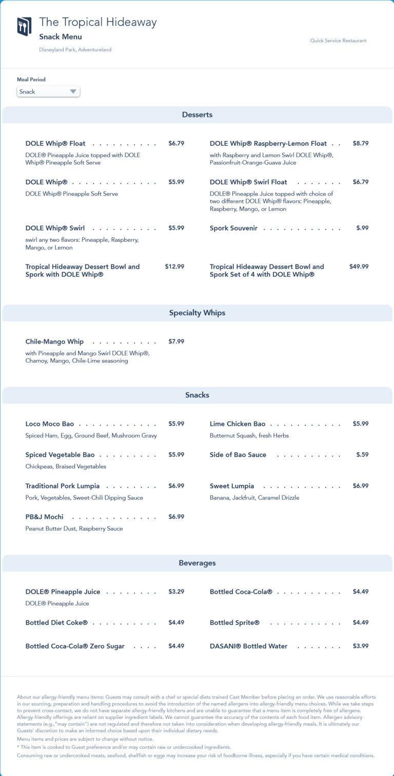 The Tropical Hideaway Snack Menu - September 2021 (archived)