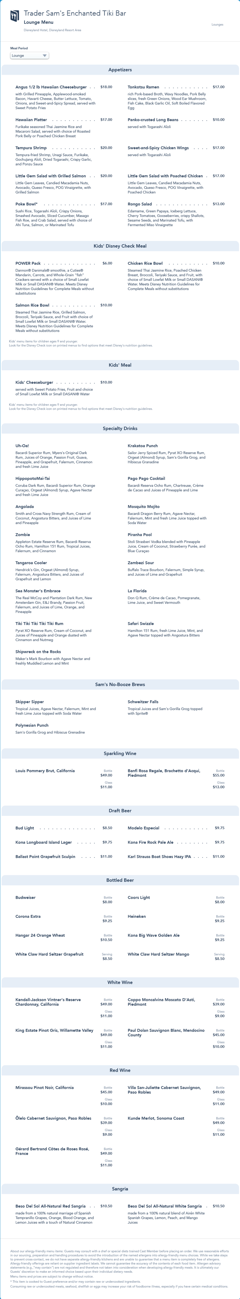 Trader Sam's Enchanted Tiki Bar Lounge Menu - July 2021 (v2)