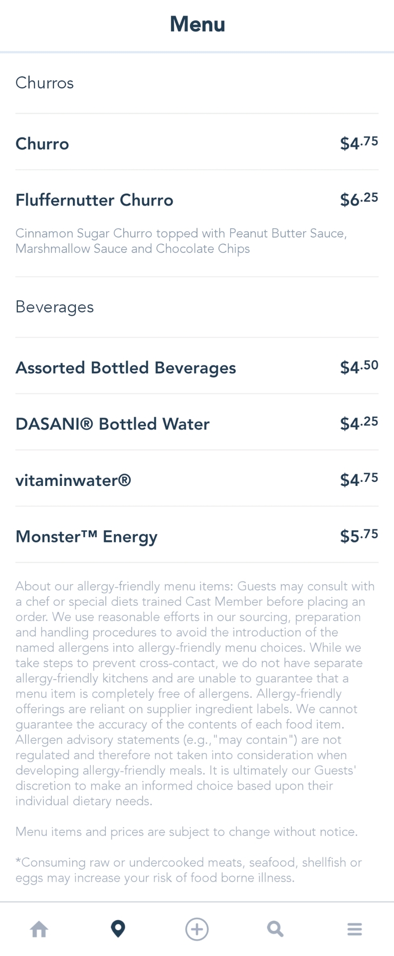 This menu was replaced by an updated menu in September 2021 that replaced the Fluffernutter Churro with the Halloween seasonal Chocolate & Matcha Churro and increased the price of the standard Churro and some Beverages.
