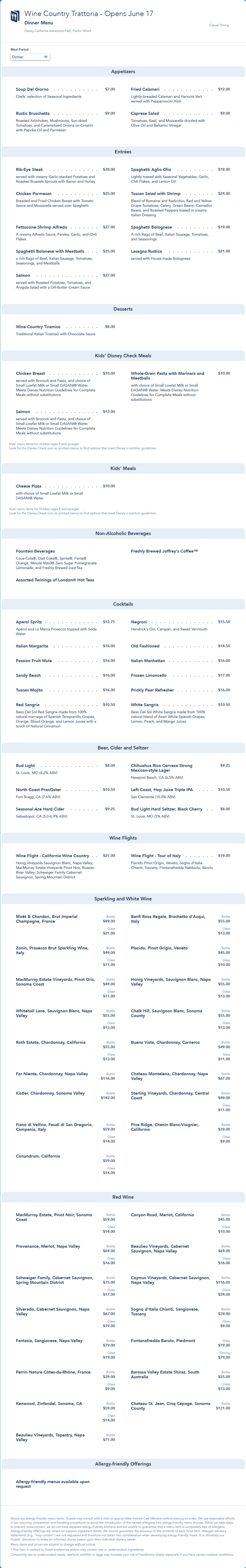 Wine Country Trattoria Dinner Menu - June 2021 (archived)