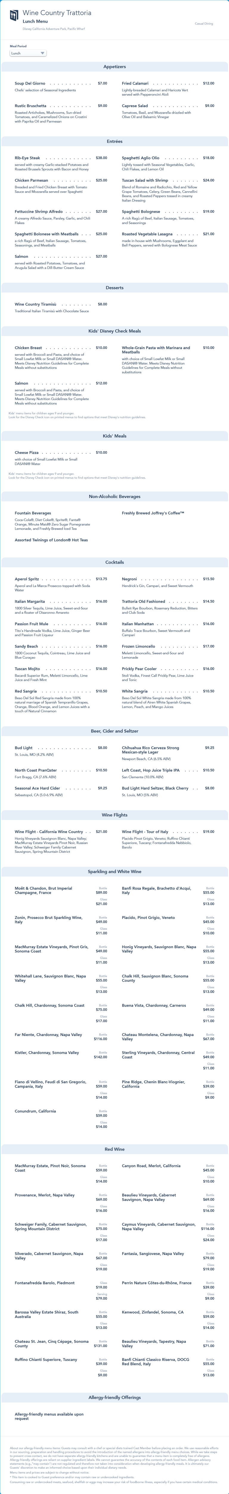 Wine Country Trattoria Lunch Menu - September 2021 (archived)