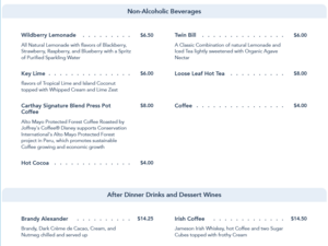 The design and décor reflects the romance and glamour of that bygone era with rare artifacts and references to the early Disney era. Peruse Snow White and the Seven Dwarfs Courvoisier cels—the only animated art ever to hang in Walt Disney’s home—and the charming pastoral scene from the movie painted on the ceiling of the main dining room.