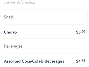 Churros near Sleeping Beauty Castle Snack Menu - November 2021