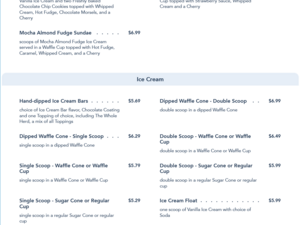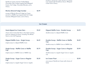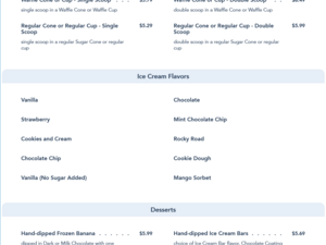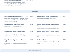 Clarabelle's Hand-Scooped Ice Cream Snack Menu - Gay Days 2021