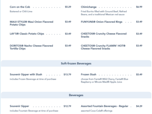 Visit this alpine chalet where you’ll be happy to meet turkey legs, chimichangas and buttered corn on the cob. Then, chill out in the shadow of the Matterhorn with a fountain drink or frozen beverage in blue raspberry, cherry or apple.