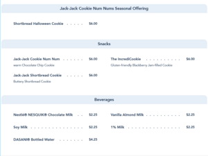 Jack-Jack Cookie Num Nums Snack Menu - June 2021