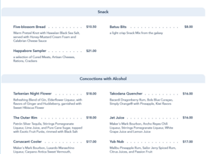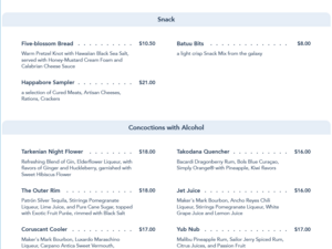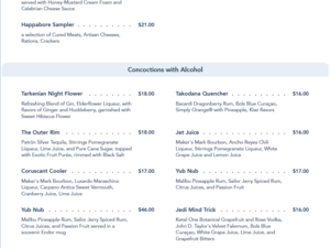Oga's Cantina Dinner Menu - Star Wars Nites 2022