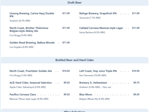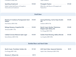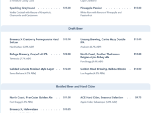 Sonoma Terrace Lounge Menu - April 2021