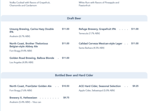 Sonoma Terrace Lounge Menu - September 2021