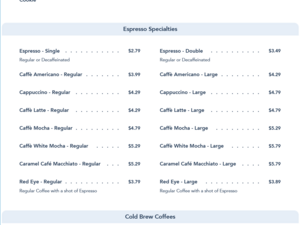 Stop by to refuel with freshly brewed espressos, lattes, coffee specialties and assorted beverages. Fresh fruit, cereals, parfaits and palate-pleasing pastries—including croissants, cookies, muffins and more—are also available.